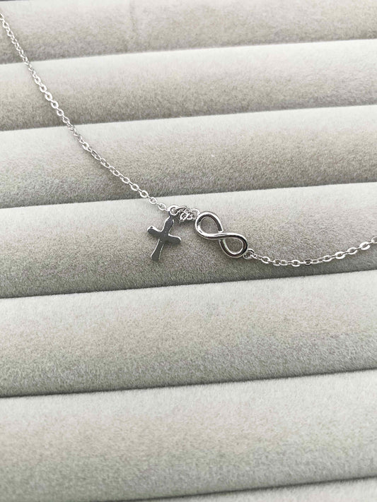 Infinity And Dangle Cross Anklet in Sterling Silver- 9, 9.5 and 10 Inches Adjustable