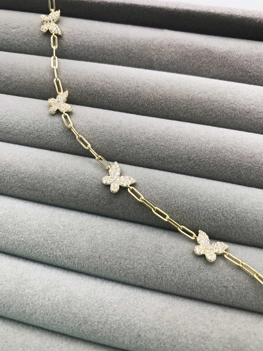 Butterfly Anklet in Gold-Bonded Sterling Silver- 9, 9.5 and 10 Inches Adjustable