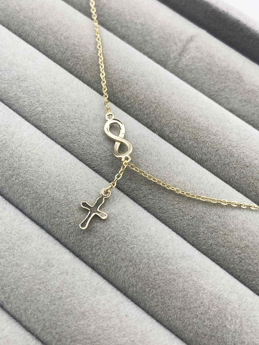 Infinity And Dangle Cross Anklet in Gold-Bonded Sterling Silver- 9, 9.5 and 10 Inches Adjustable